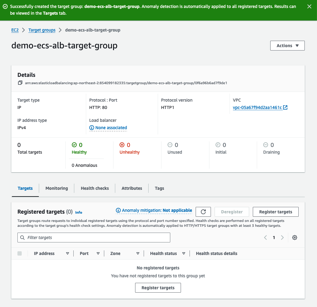 그룹에 포함될 타겟은 ECS에 의해 자동으로 등록되므로 별다른 설정이 필요 없다.