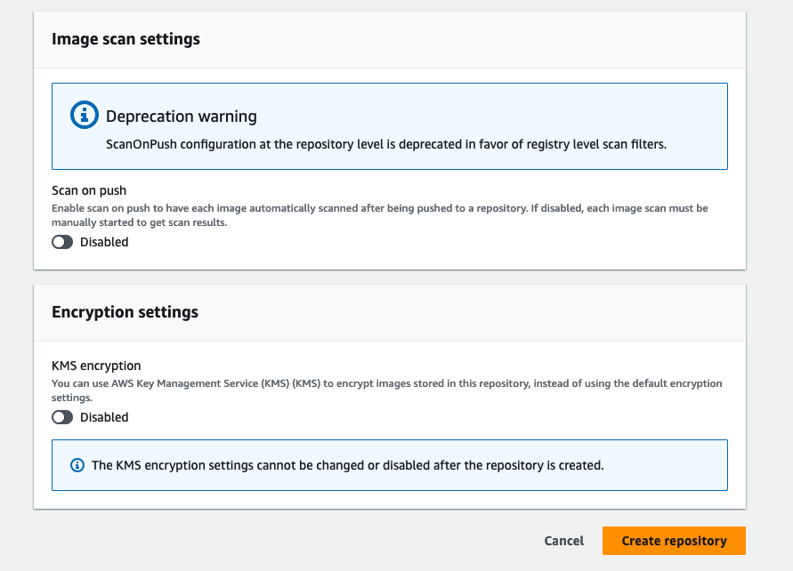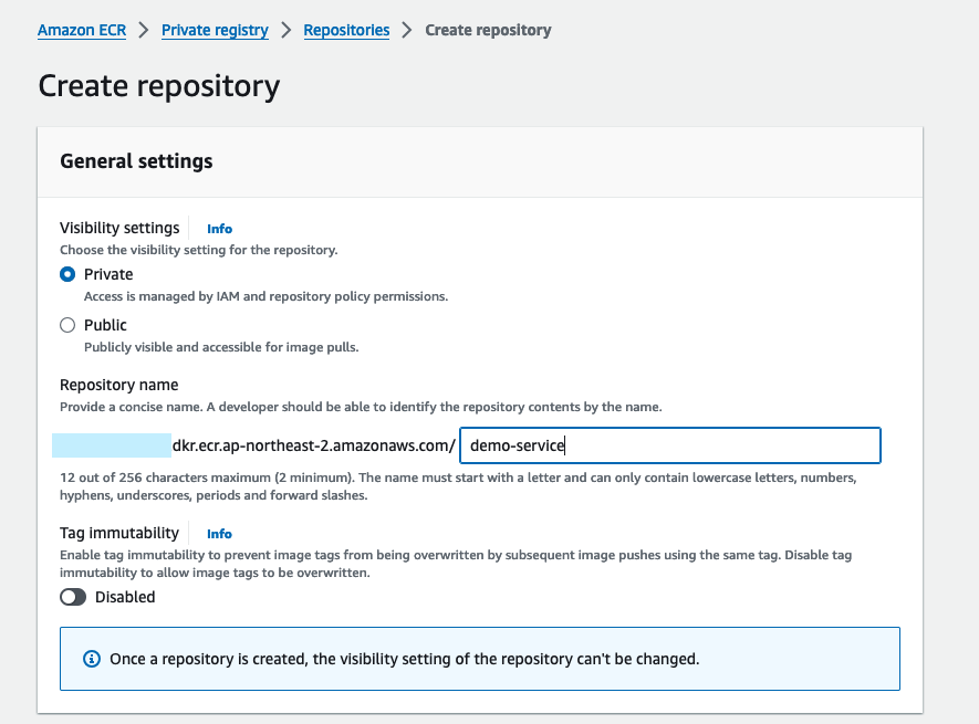 demo-service으로 정한다. Create repository버튼을 누른다.