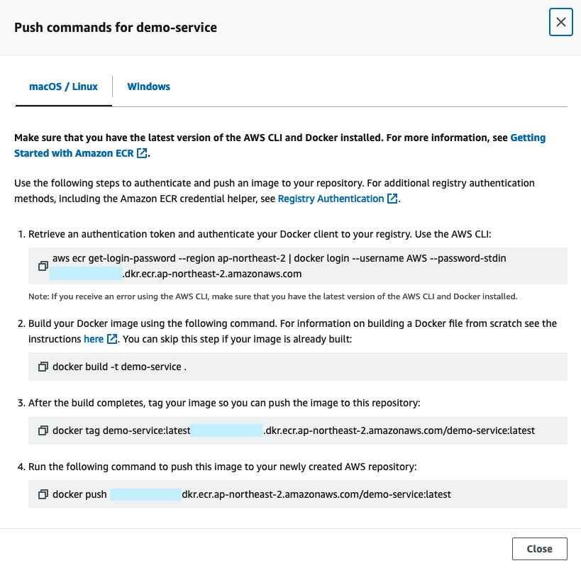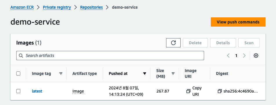 $ docker push 1234567890.dkr.ecr.ap-northeast-2.amazonaws.com/demo-service:latest