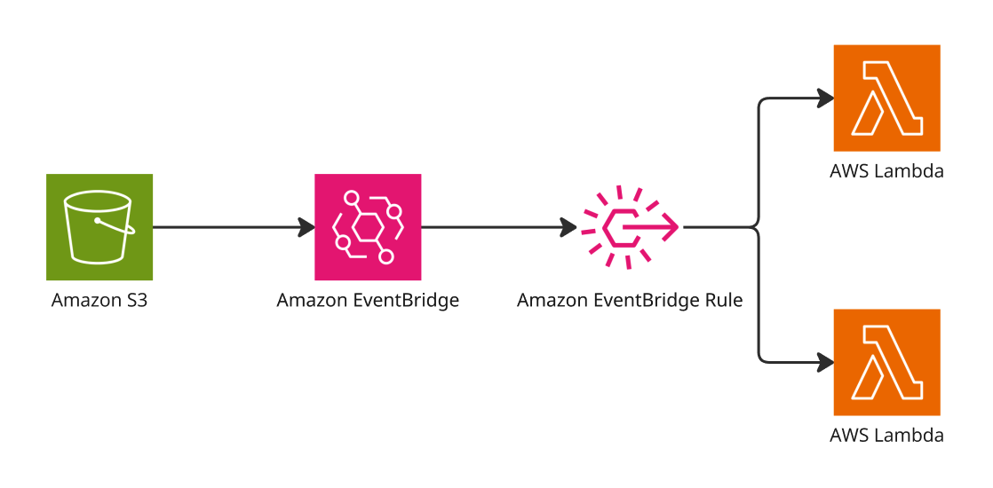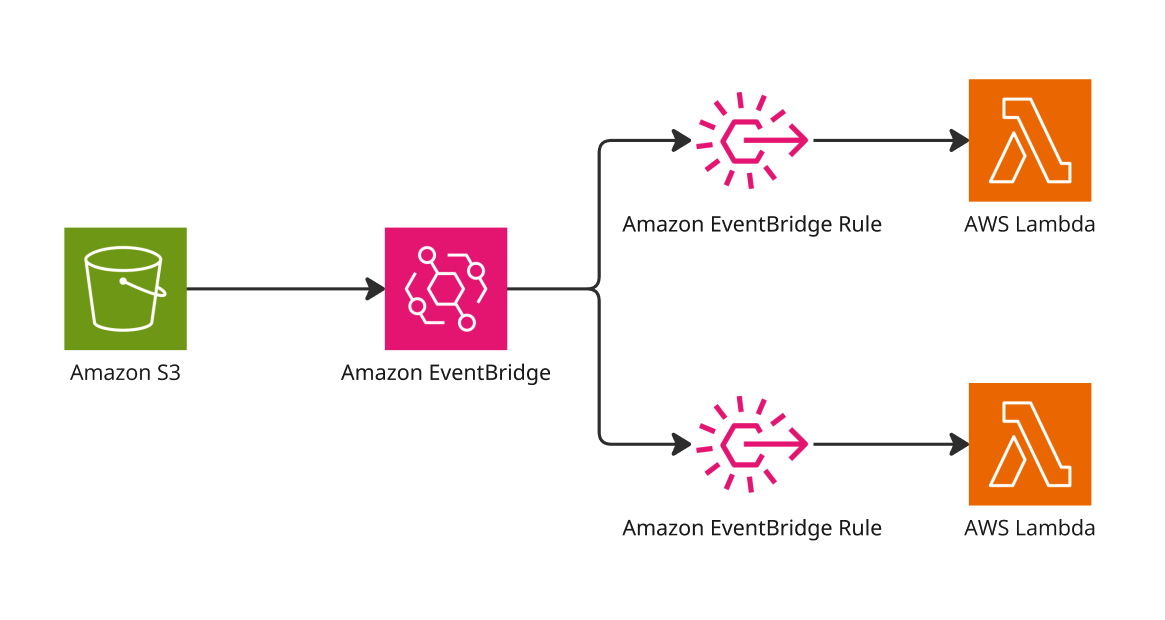 파일 업로드 이벤트가 하나의 람다가 아닌 다른 람다에서도 필요했다. 아쉽게도 S3 이벤트 알림은 하나의 이벤트를 동시에 여러 대상에 전송할 수 없기 때문에 이벤트 브릿지를 사용했다. AWS EventBridge는 서버리스 이벤트 버스 서비스로 애플리케이션 간이 이벤트 기반 통합(evnet driven integration)을 코드 없이 쉽게 구현할 수 있도록 돕는 컴포넌트다. 작성한 규칙에 따라 지정된 타겟으로 이벤트를 전달한다.