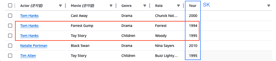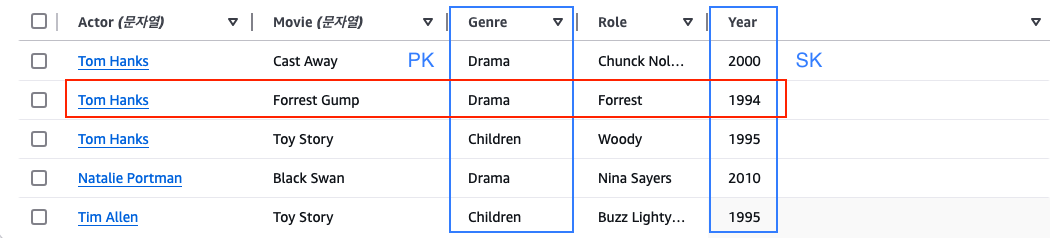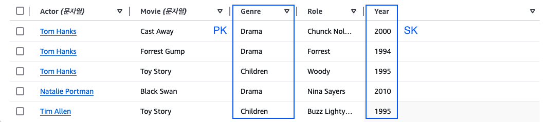 - 로컬 보조 인덱스 이름은 “ActorYearIndex”이다.