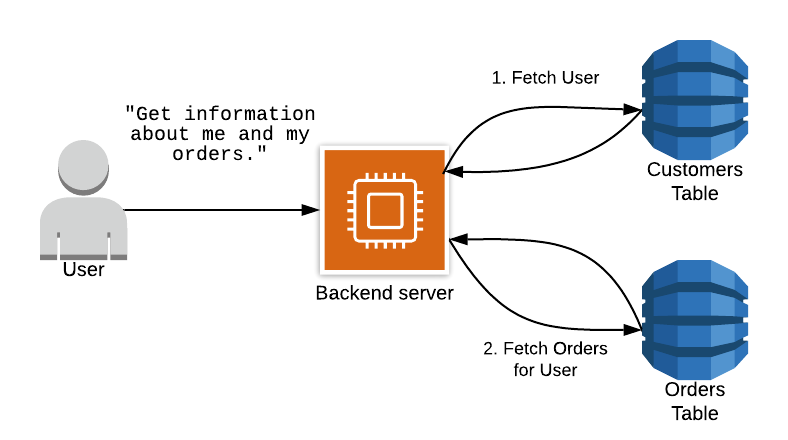 DynamoDB는 조인 연산을 지원하지 않기 때문에 애플리케이션은 DynamoDB로 두 차례 HTTP 조회 요청을 수행한다.