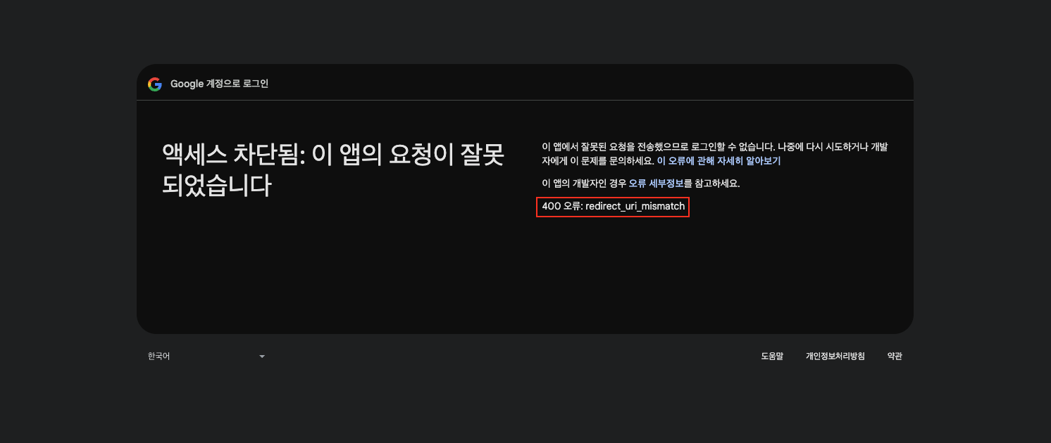 - 400 오류: redirect_uri_mismatch
