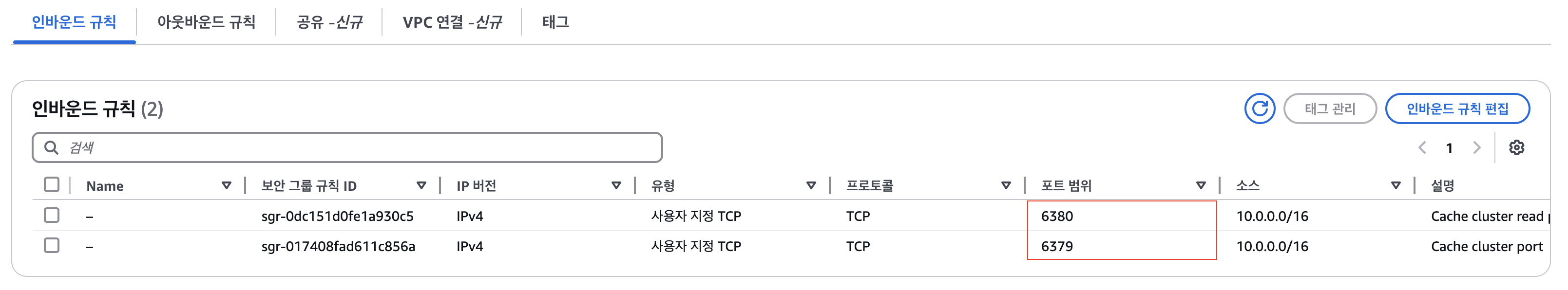 다음과 같이 두 개의 포트를 인바운드 규칙으로 지정한다.