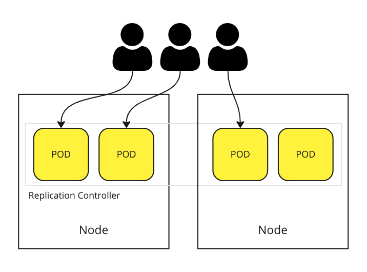 사용자 수가 늘어나면 노드(node) 리소스가 부족할 수 있다. 레플리케이션 컨트롤러를 사용하면 클러스터(cluster)를 구성하는 다른 노드에 쉽게 파드를 스케일 아웃(scale out)할 수 있다. 레플리케이션 컨트롤러 오브젝트만 사용하는 경우 시스템 운영자의 수작업이 필요하지만, 다른 오브젝트를 사용하면 스케일 아웃도 자동화할 수 있다.