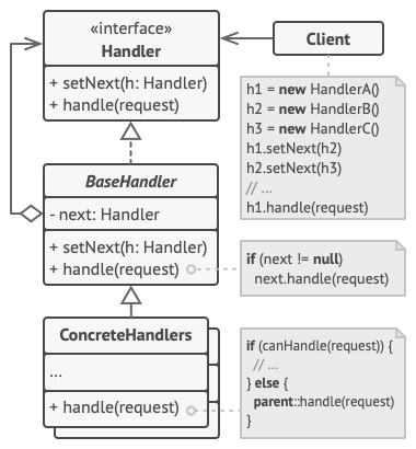 책임 연쇄 패턴은 다음과 같은 구조를 갖는다.