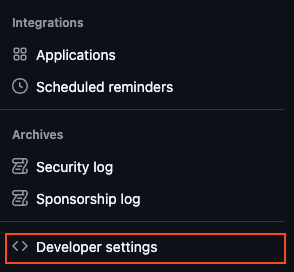 왼쪽 사이드 메뉴 하단의 Developer Settings 페이지로 이동한다.