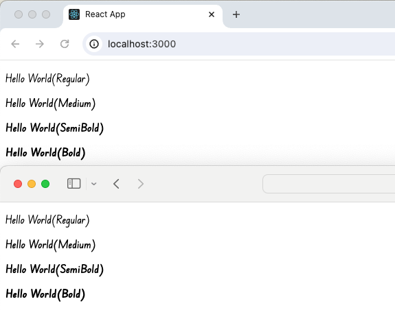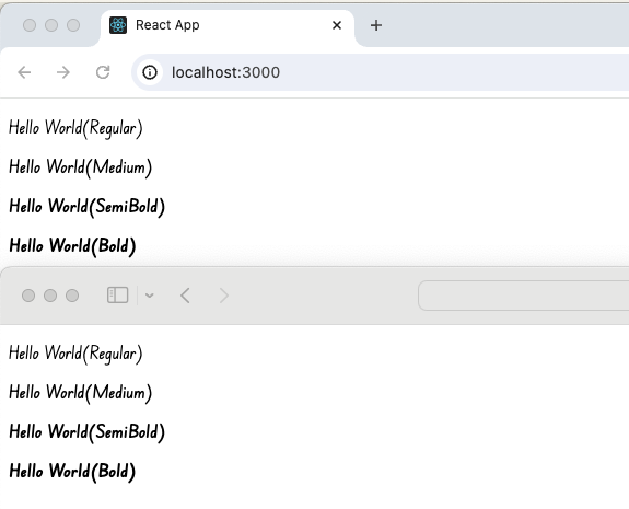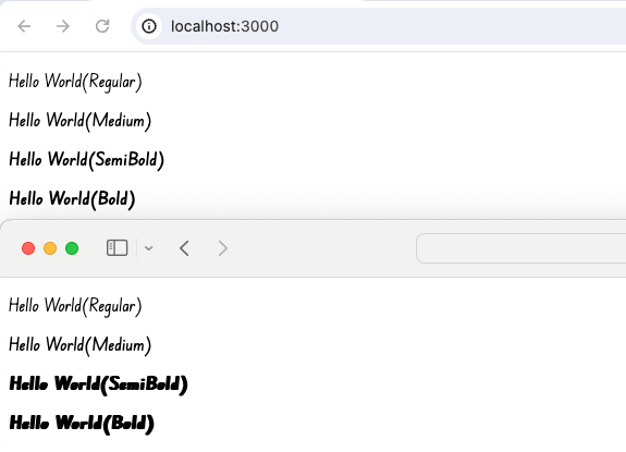- SemiBold, Bold 폰트의 경우 font-weight 속성에 normal 값이 아닌 실제 굵기 값을 준다.