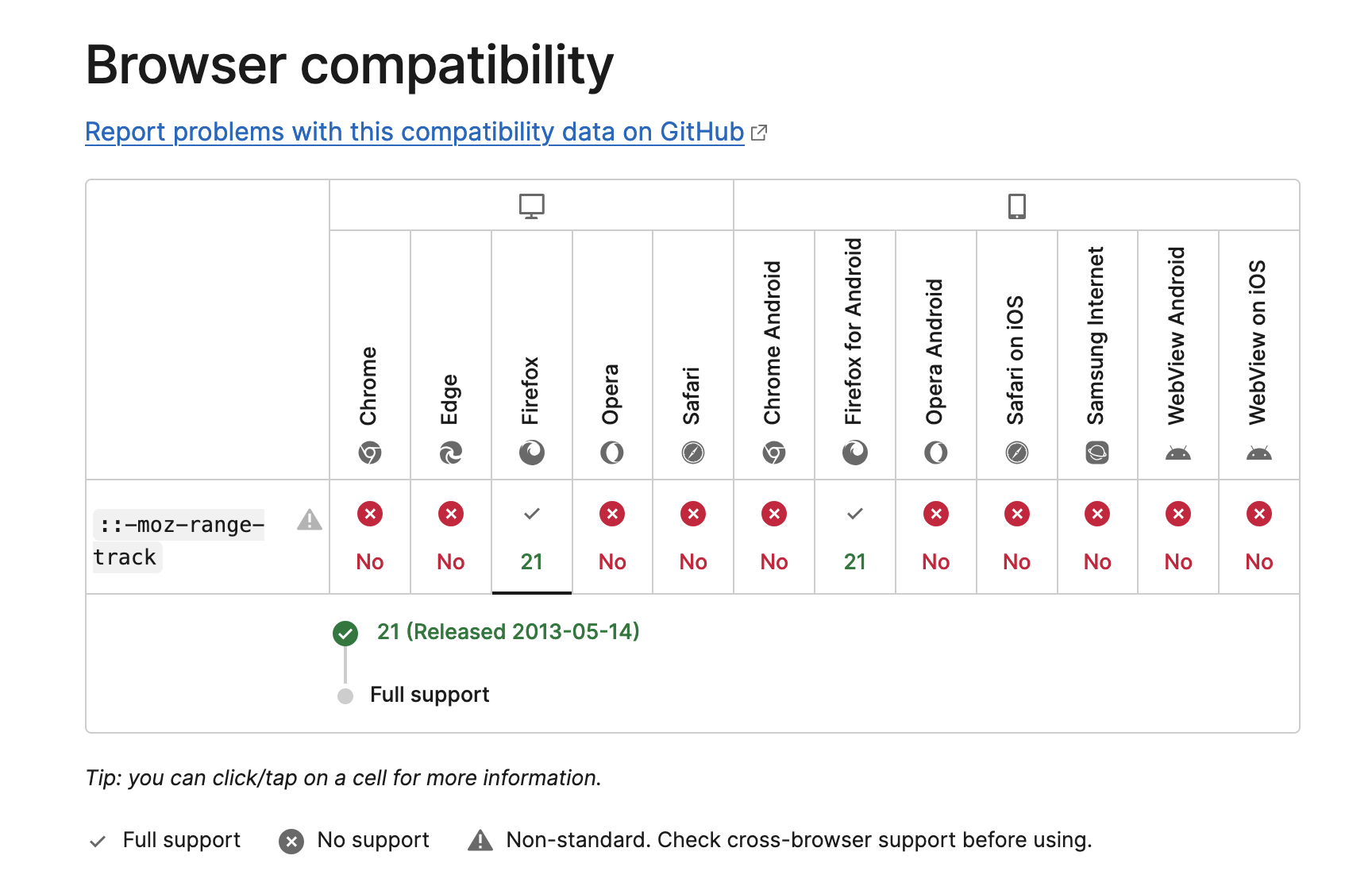 Non-standard: This feature is non-standard and is not on a standards track. Do not use it on production sites facing the Web: it will not work for every user. There may also be large incompatibilities between implementations and the behavior may change in the future.
