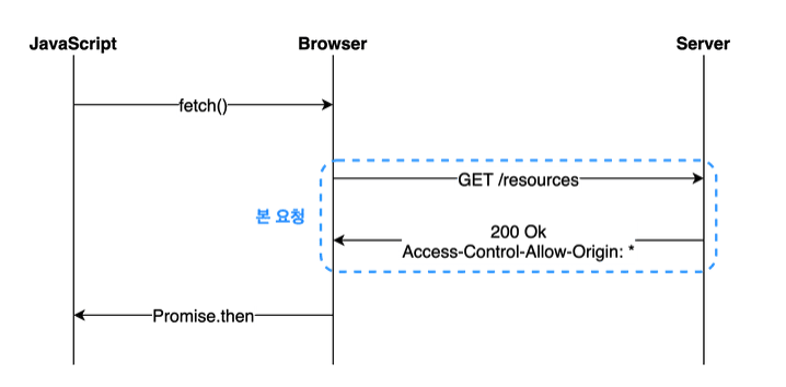 https://bar.other/서버의 리소스를 위해 프리플라이트 요청을 보낸다. - CORS 헤더와 정상 응답을 받으면 본 요청을 보낸다.