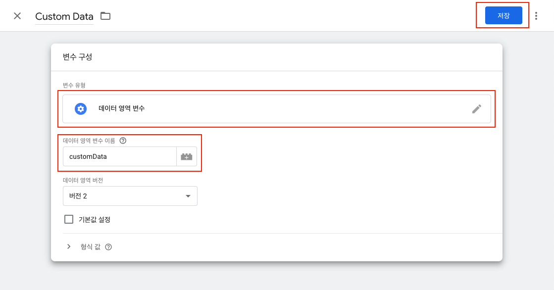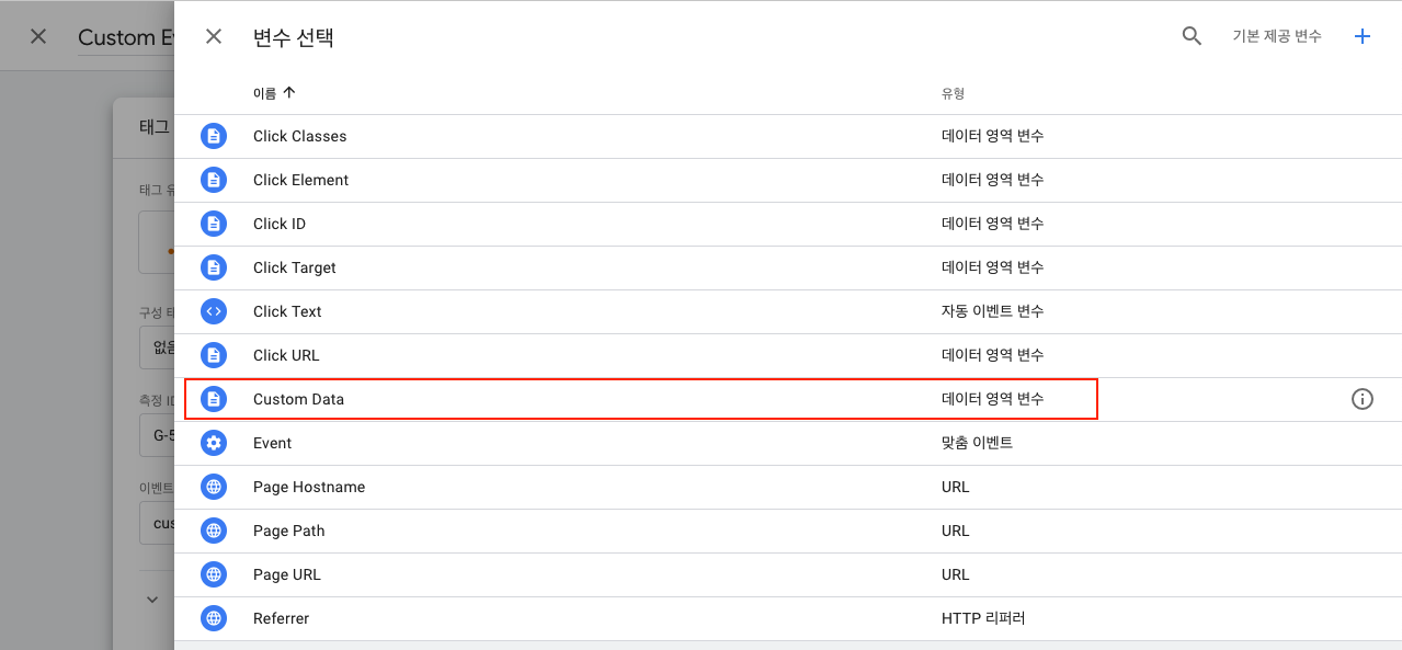 Custom Data변수를 선택합니다.