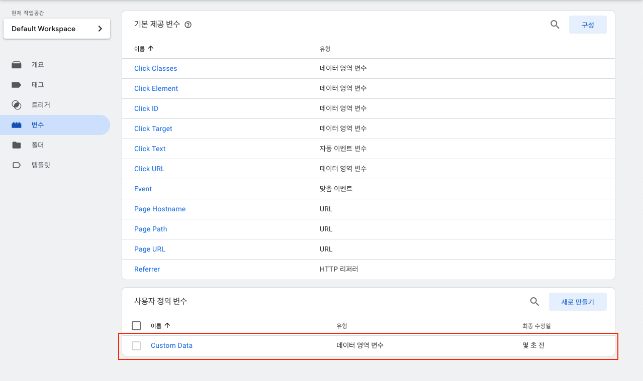 Custom Data라는 변수가 생성됩니다.