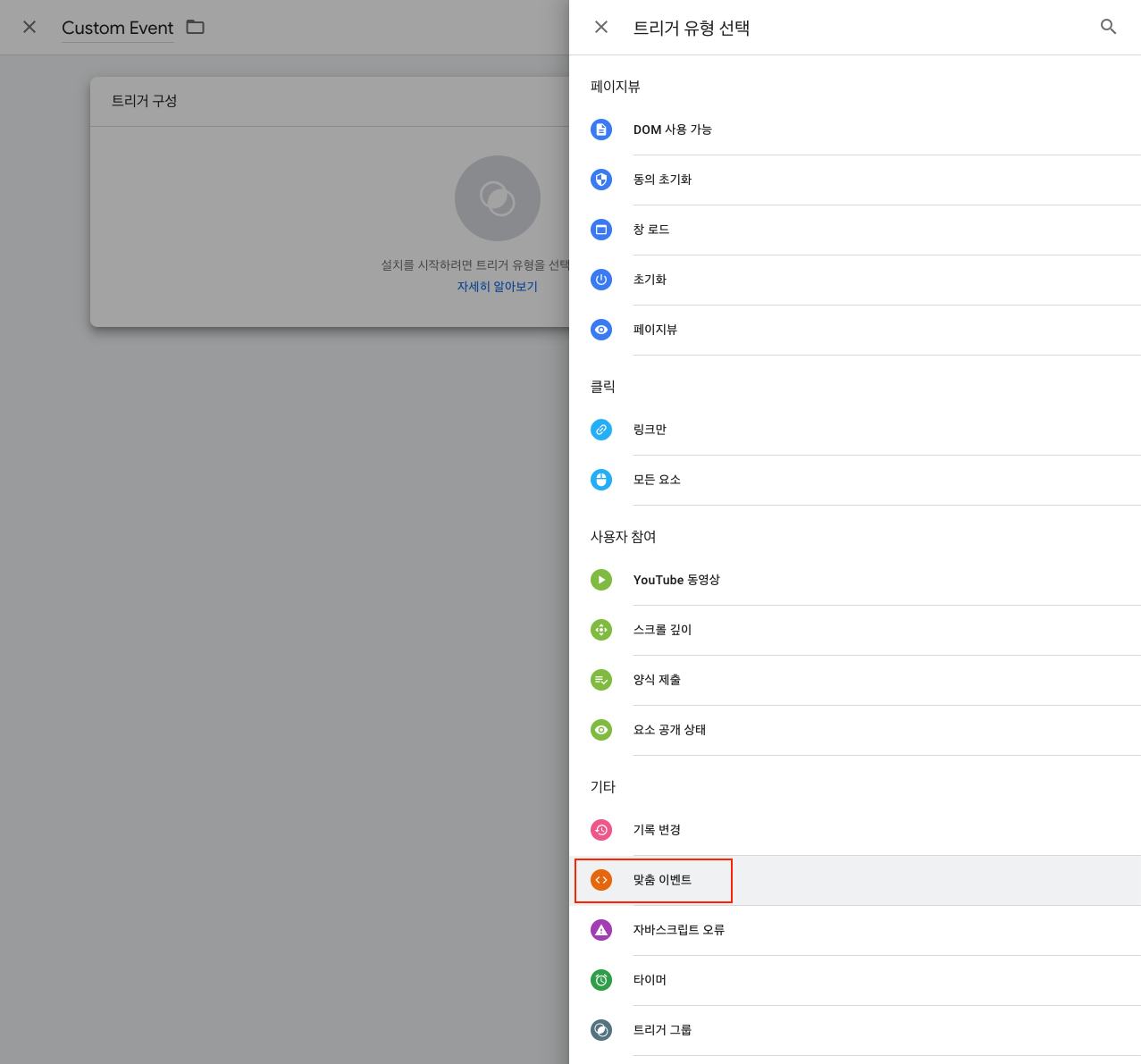 맞춤 이벤트를 선택합니다.