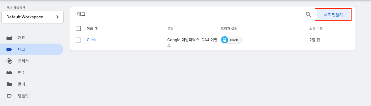 - 신규 태그를 생성합니다.
