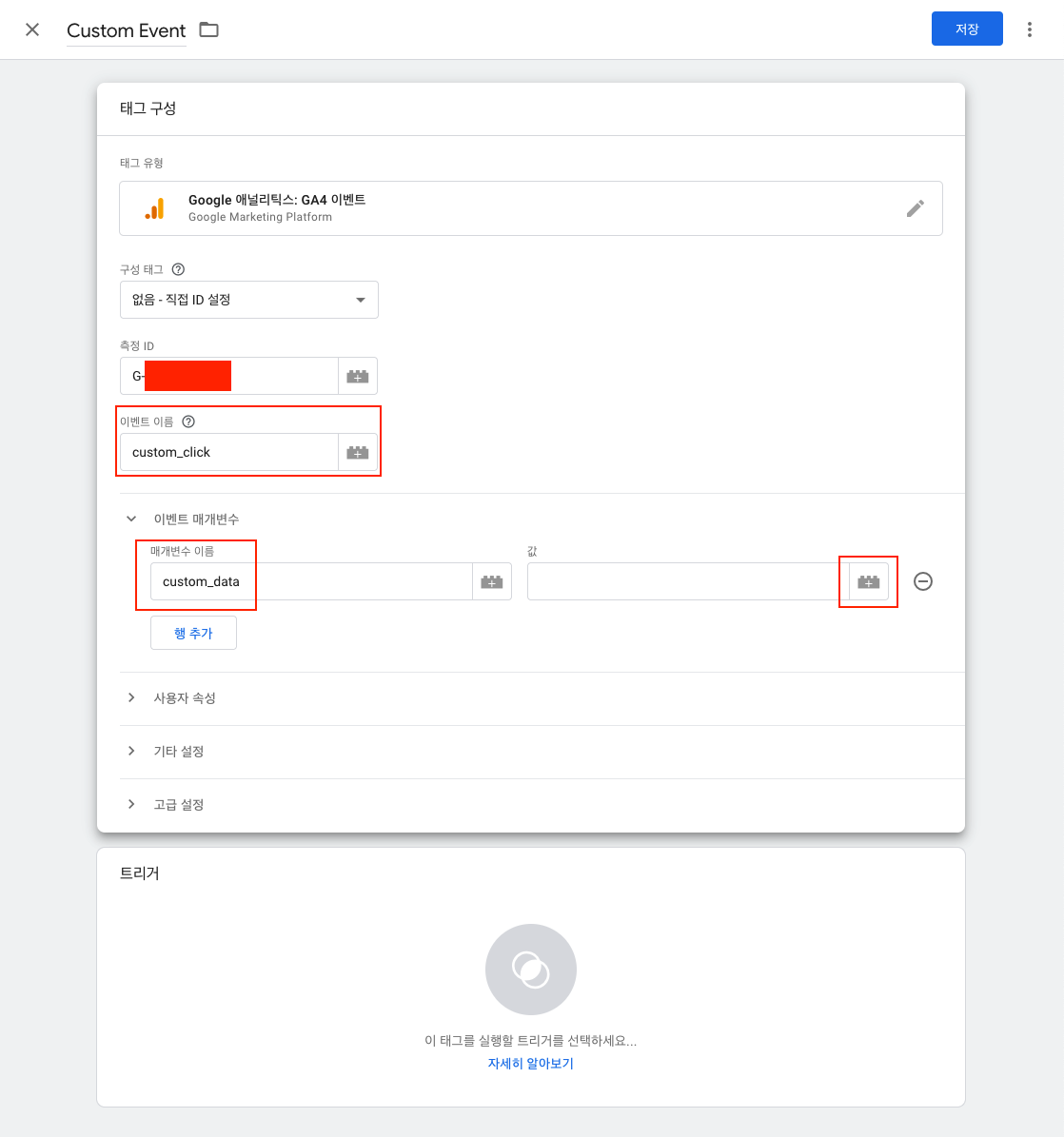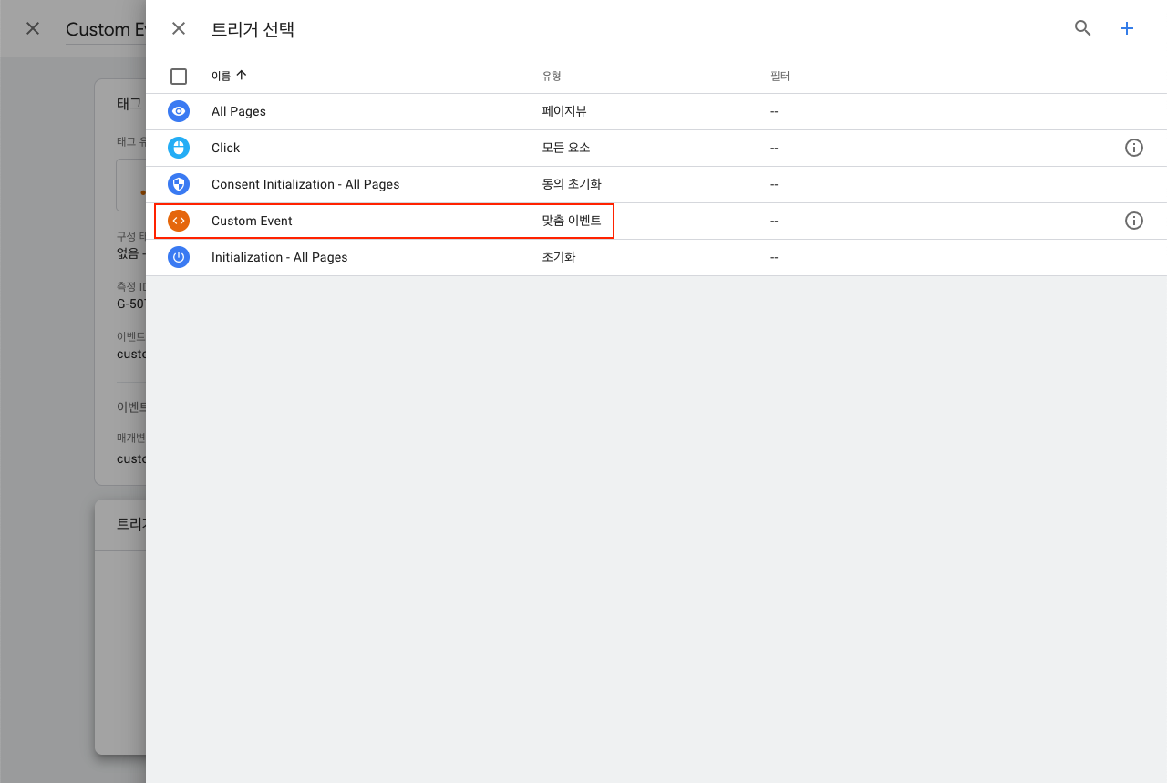 custom_event로 지정합니다. - 변수로 지정되어 추적하는