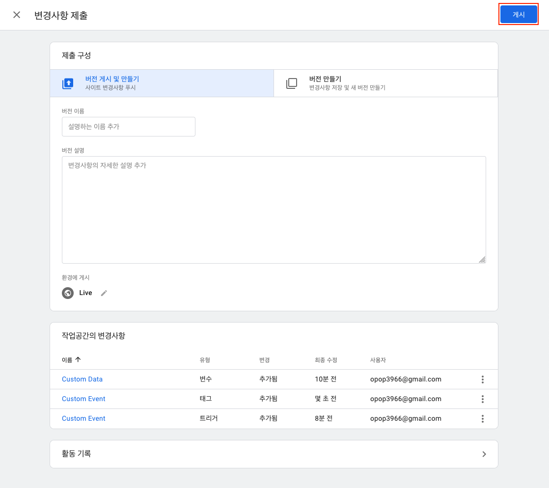 - 게시 버튼을 클릭하여 변경사항을 반영합니다.