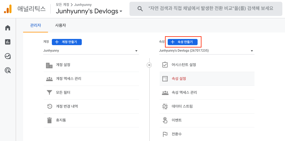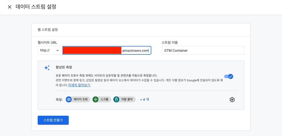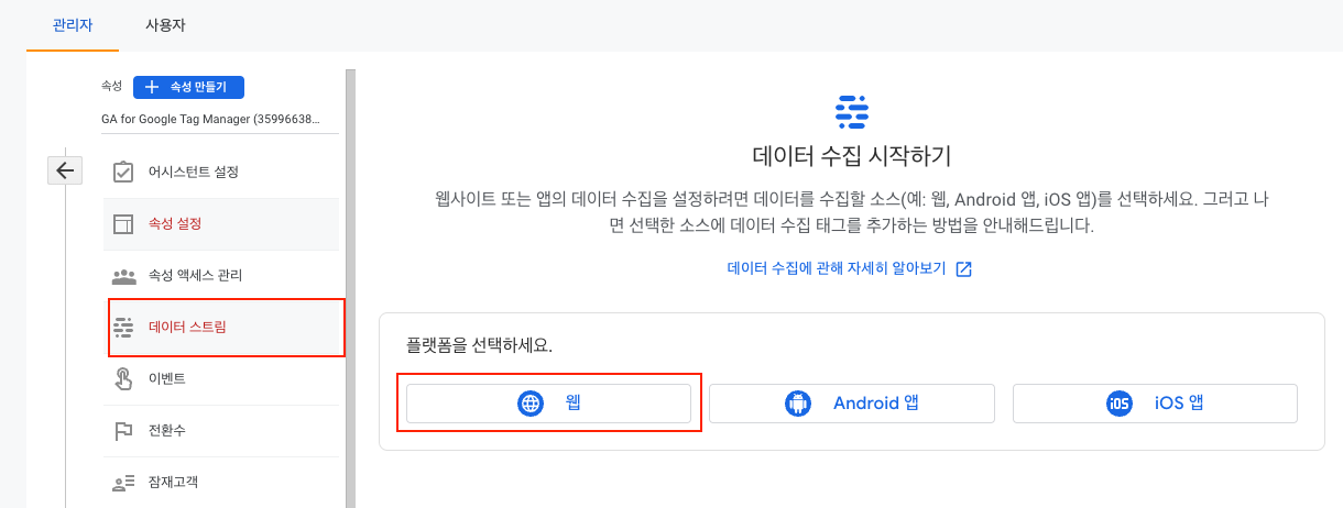 - 만든 속성에서 데이터 스트림을 지정합니다.
