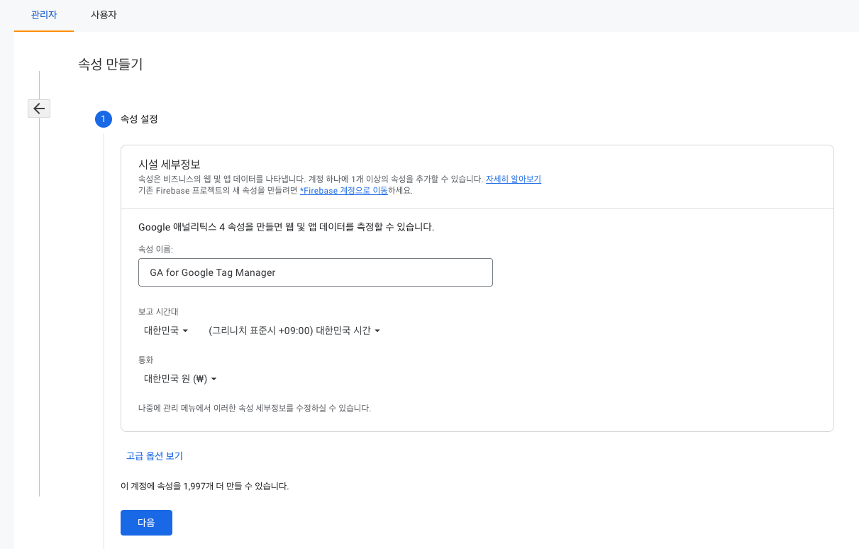 - 속성의 이름, 시간대, 통화를 지정합니다.