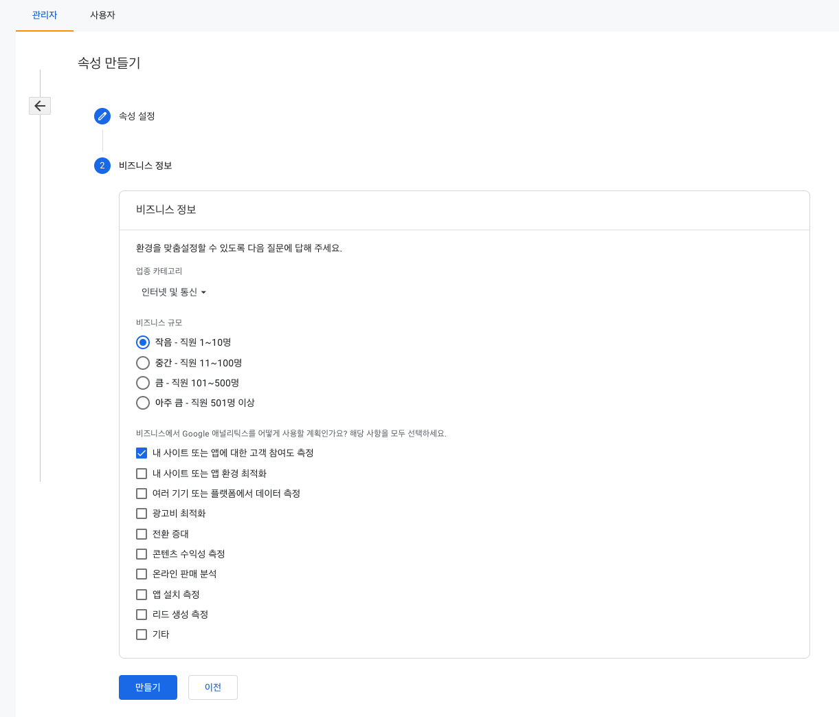 - 기타 정보를 입력 후 만들기 버튼을 누릅니다.