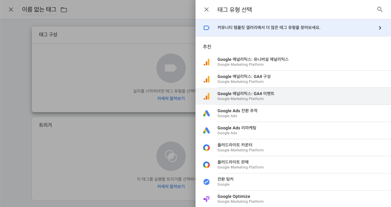 - 구글 애널리틱스 GA4 이벤트를 선택합니다.