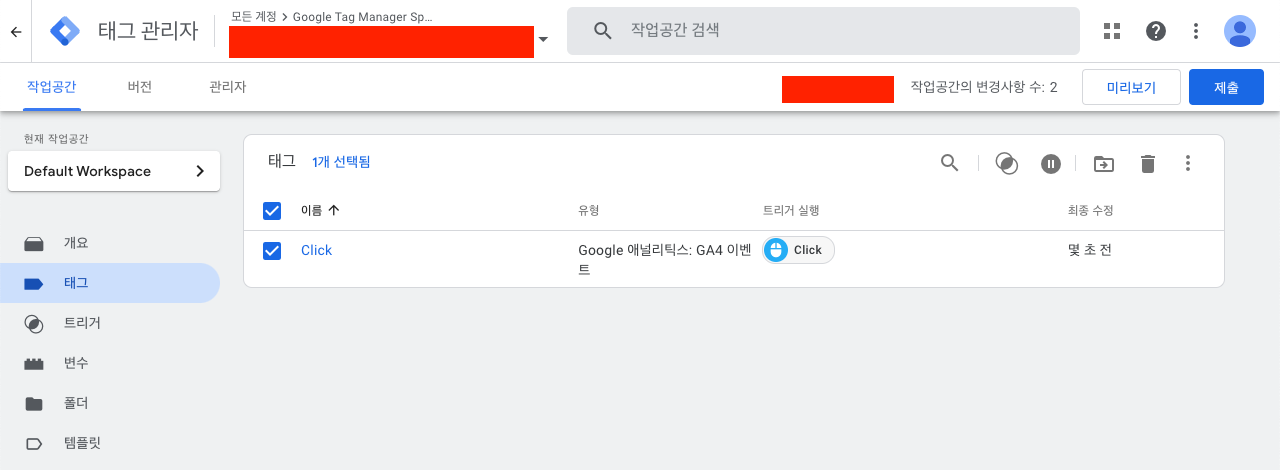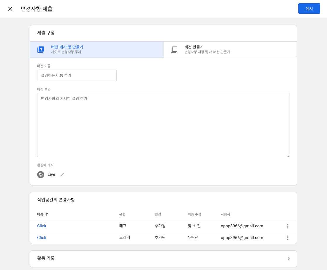 - 태그 매니저에서 만든 변경 사항들을 배포합니다.