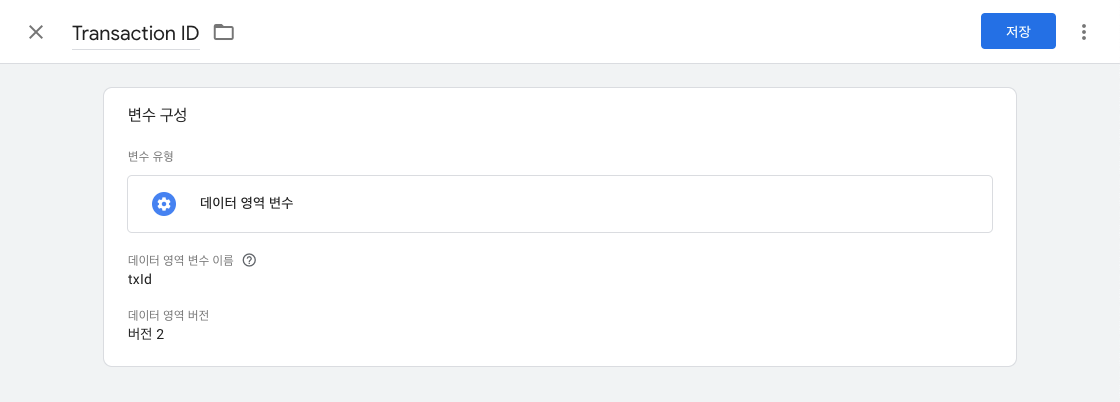 tx_id는 구글 애널리틱스에서 보여지는 이름입니다. - 매개변수 값은 변수에서 정의한