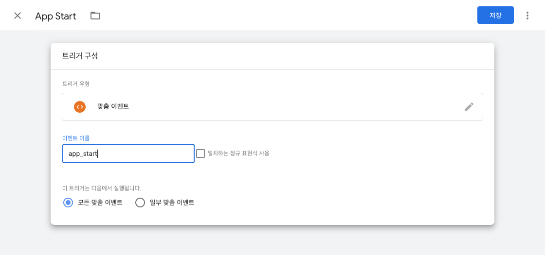 app_start입니다.- 구글 애널리틱스에서 보여지는 이벤트 이름입니다.
