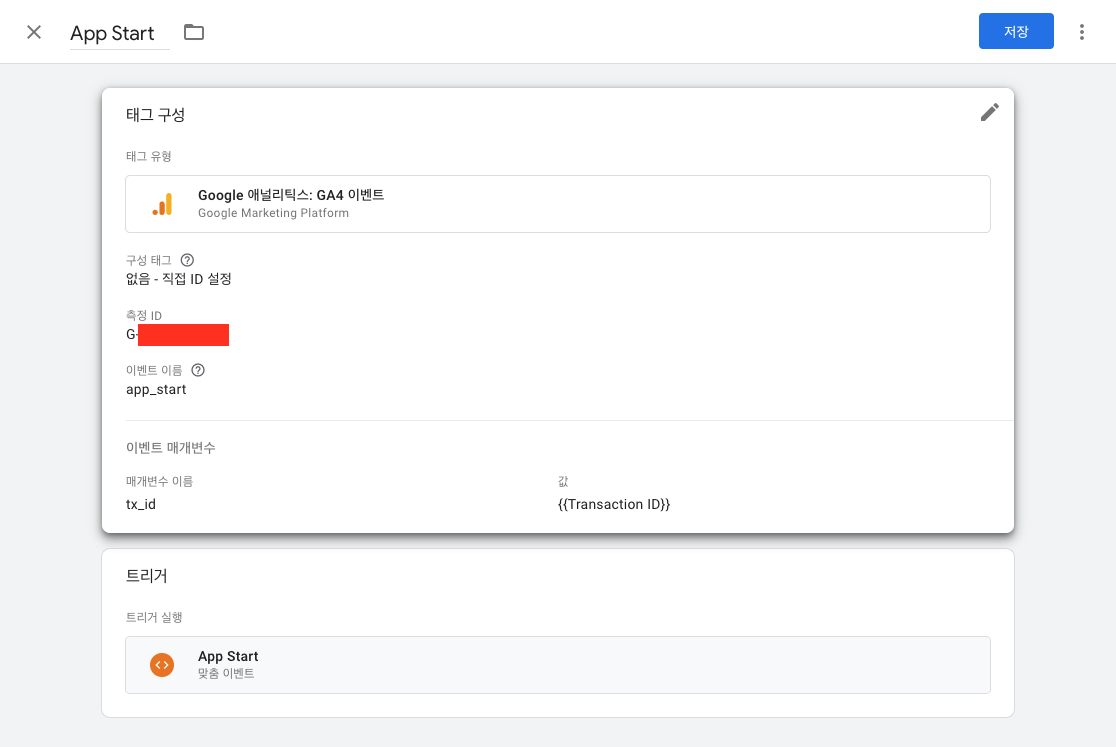 App Start입니다. - 측정 ID는 구글 애널리틱스 생성 시 발급받은