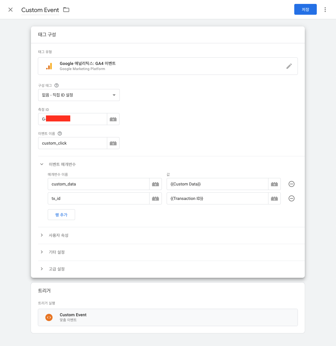 - 신규 커스텀 이벤트를 구글 애널리틱스와 연결하기 위해 태그를 생성합니다.
