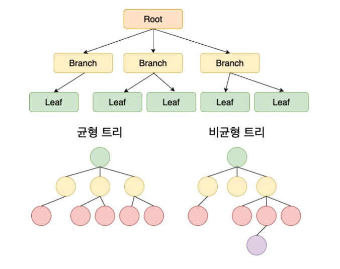 B-Tree의 B는 이진(binary)가 아닌 균형(balance)이다. 루트 노드에서 모든 리프 노드까지의 거리를 균일하게 조정한다. B-Tree는 차수에 따라 자식 노드 수가 결정된다. 예를 들어 2차 B-Tree는 자식 노드가 2개, 3차인 경우 3개이다.