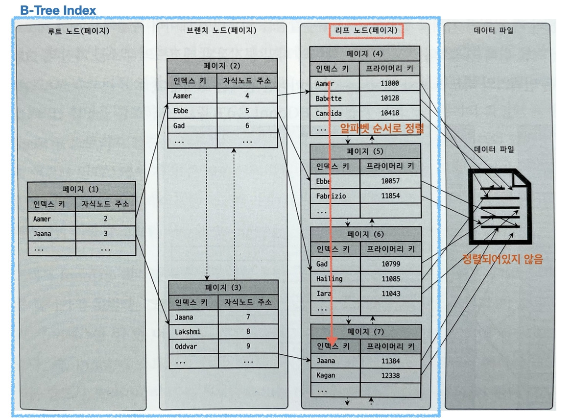 대용량 데이터베이스라도 B-Tree의 깊이는 5단계 이상까지 깊어지지 않는다고 한다.