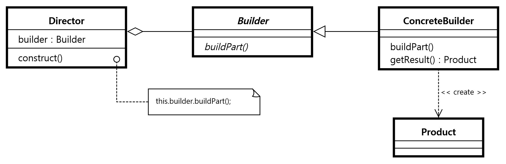 - Builder 인터페이스를 구현한 클래스