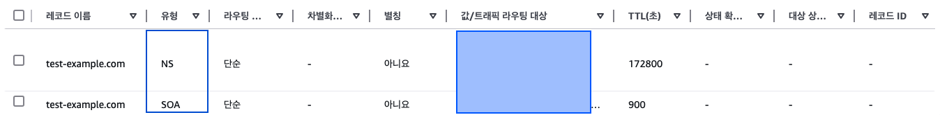 DNS 레코드는 도메인 이름과 IP 주소 및 기타 정보를 연결할 때 사용하는 데이터베이스 항목이다. AWS Route53에 호스팅 영역을 구축하면 아래와 같은 테이블에 각 레코드에 대한 타입을 확인할 수 있다.