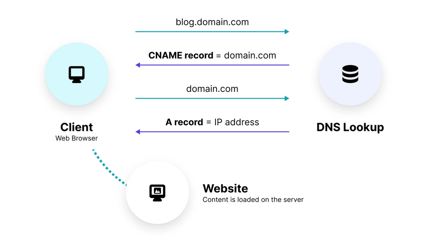 CNAME(Canonical Name) 레코드는 도메인을 다른 도메인 이름으로 연결한다. 도메인 별명(alias)을 지어주는 것과 동일하다. 예를 들어 www.example.com 도메인을 example.com 도메인 주소로 연결하는 것이다. 도메인을 여러 개 사용하는 경우 CNAME 레코드를 통해 실제 서비스 접근 경로를 하나로 제어할 수 있지만, 클라이언트가 특정 도메인에 대한 IP 주소를 얻기 위해서 두 번의 요청을 주고 받아야 한다.