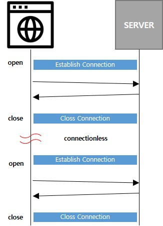 - HTTP는 비연결성 특징 때문에 매 요청마다 연결 성립과 종료 작업을 수행해야 한다.