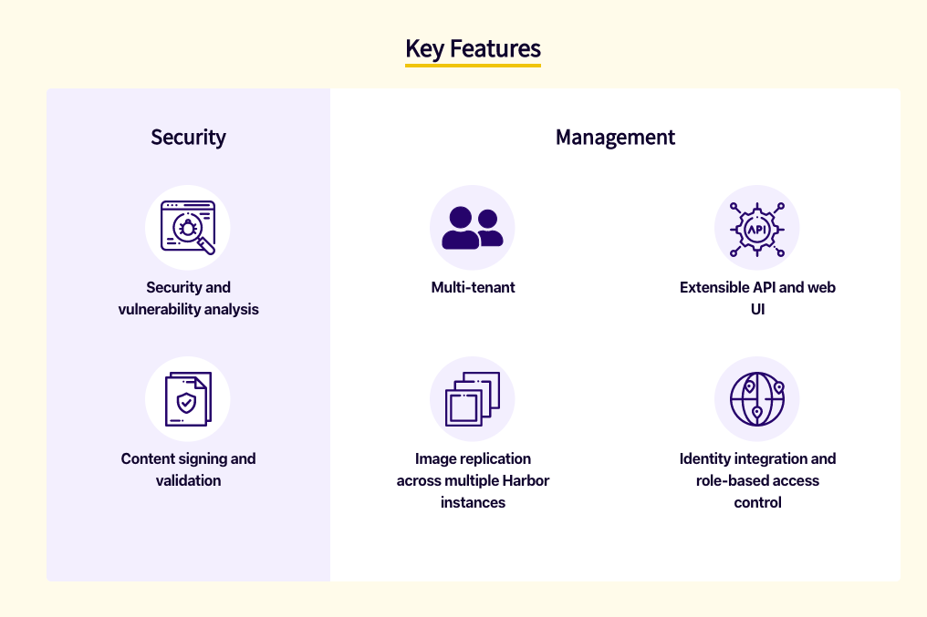 클라우드 네이티브 플랫폼인 쿠버네티스(kubernetes)나 도커(docker)를 위한 오픈 소스 이미지 저장소입니다. 하버는 다음과 같은 특징들은 가지고 있습니다.