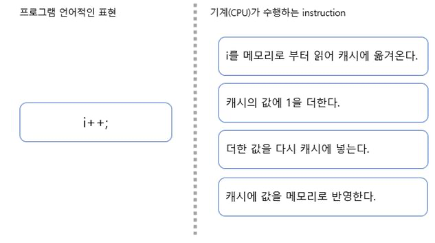 - 코드 한 줄이더라도 기계어로 변경되면 원자적이지 않은 연산이 될 수 있습니다.