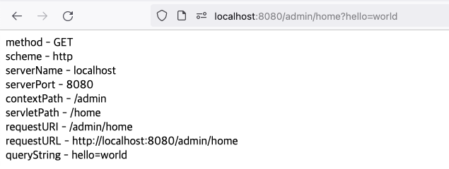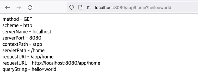 - 서블릿 패스는 컨텍스트 패스 정보를 제외한 서블릿 컨테이너가 받은 경로이다.