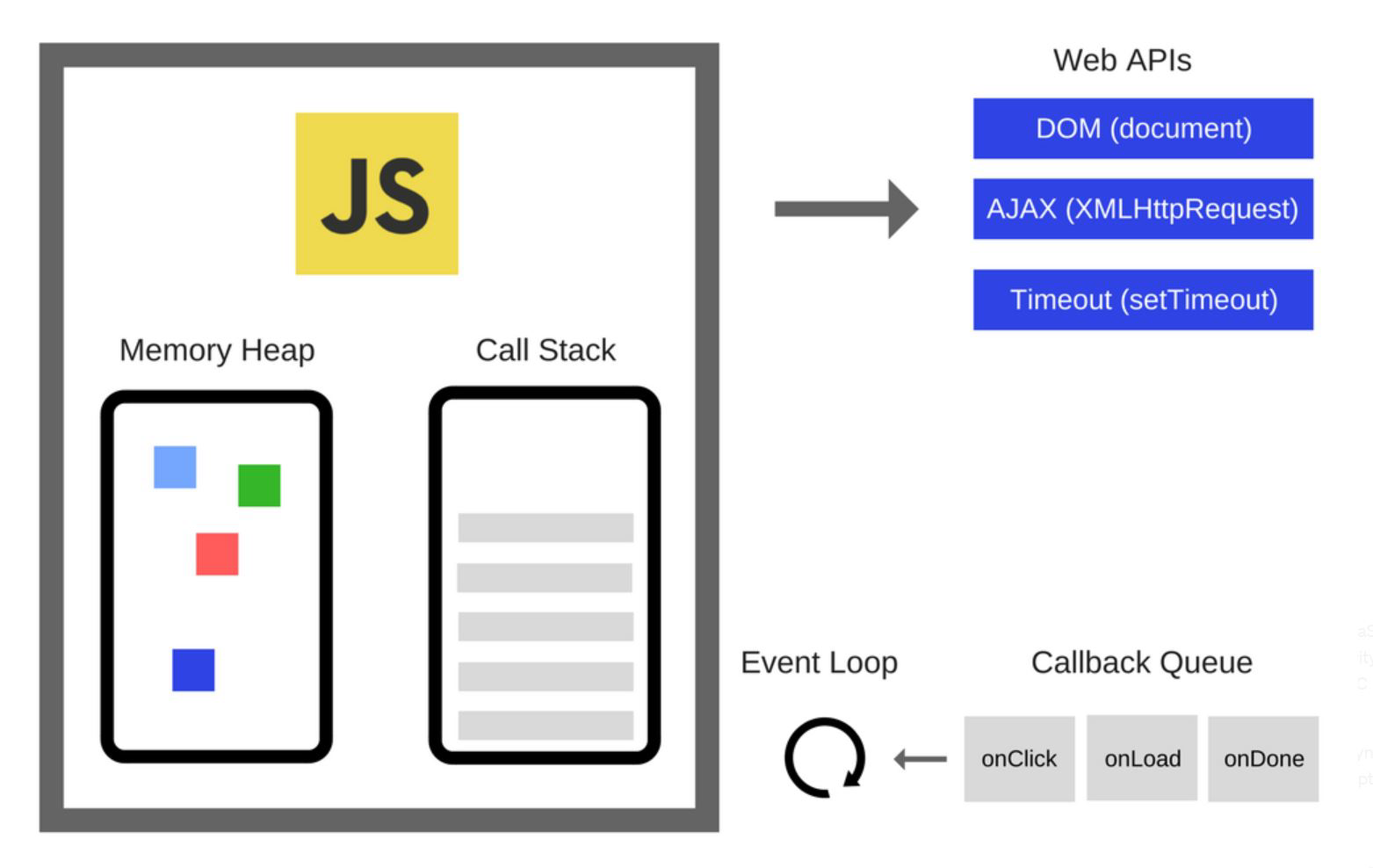 - JavaScript 엔진의 비동기적인 처리는 JavaScript 런타임의 Web API를 이용한 논-블로킹(non-blocking) 처리를 통해 이뤄집니다.
