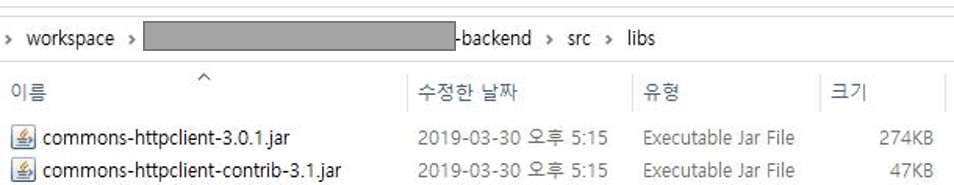 메이븐 레포지토리에서 관리하는 의존성이 아닌 서드-파티(3rd party) 라이브러리를 사용할 때 파일 이름과 디렉토리 이름을 위 규칙을 따라 준비한다. 필요한 의존성들을 프로젝트 특정 폴더에 옮겨 놓는다. 예시에선 /src/libs 폴더를 사용하였다.