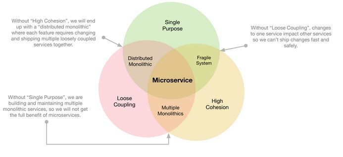 마이크로 서비스는 단일 비즈니스를 수행하기 때문에 서비스의 기능들은 자연스럽게 높은 응집도를 가지게 된다. 각 서비스는 모든 관련된 행위와 데이터를 캡슐화하여 관리한다. 새로운 기능을 구축해야 하는 경우 모든 변경사항이 하나의 단일 서비스에서만 수정되도록 해야 한다.