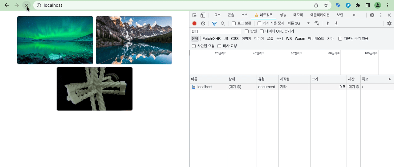 - 네트워크 트래픽이 발생하지 않으므로 자원 요청 시간이 0초인 것을 볼 수 있다.