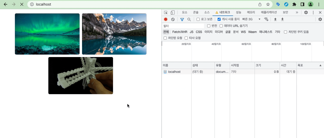 빠른 3G네트워크 환경- 캐시 사용 중지