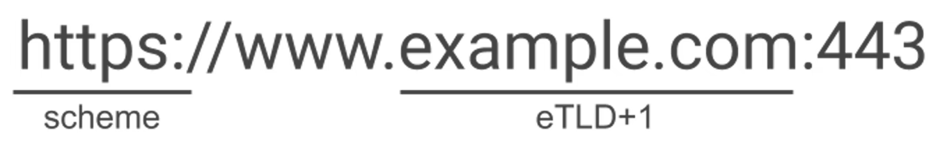동일 사이트(same site)와 크로스 사이트(cross site)에 대한 기준을 정확히 짚고 넘어가자. 동일 사이트란 Top-Level Domains(TLDs)를 기준으로 eTLD+1 도메인 주소까지 동일한 것을 의미한다. eTLD(effective TLD)은 Root Zone Database 사이트에서 관리되는 .com, .org 같은 루트 도메인들을 의미한다.
