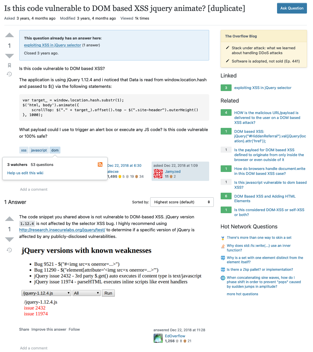 - https://security.stackexchange.com/questions/200215/is-this-code-vulnerable-to-dom-based-xss-jquery-animate
