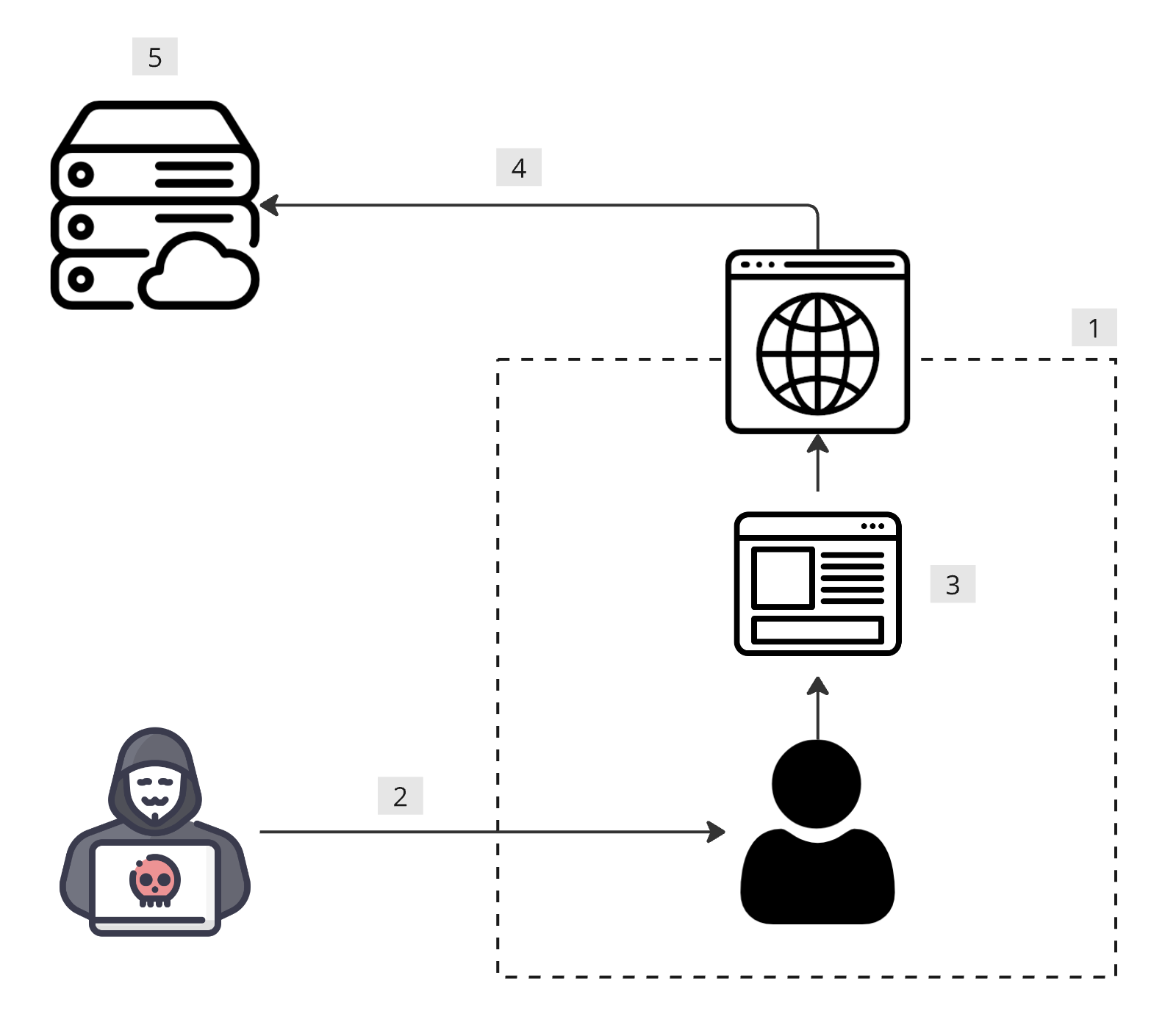 위와 같은 조건이 만족되면 다음과 같은 과정을 통해 CSRF 공격이 수행된다.