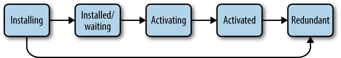 서비스 워커는 설치에서 활성화까지 아래와 같은 상태를 거치게 된다.