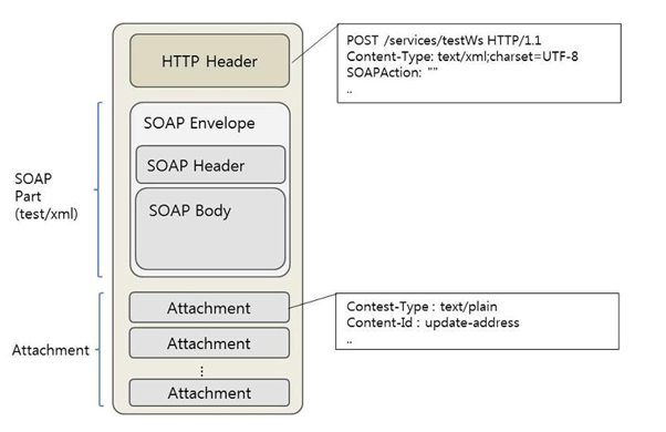 SOAP메시지 형식에 맞는 요청 정보를 만듭니다. - 소비자는 HTTP를 통해