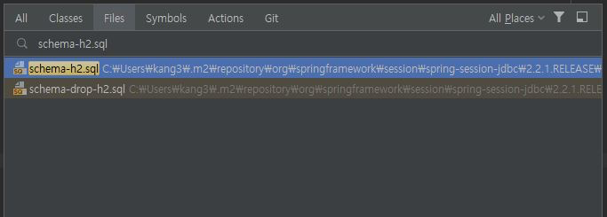 해당 파일은 pom.xml 파일에 spring-session-jdbc 의존성 주입 시 함께 다운받아지므로 IntelliJ 파일 검색에서 검색됩니다.